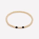 4MM 14K yellow gold beaded bracelet for men with two black matte onyx bead on clear elastic.